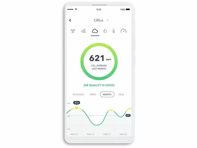 Verschaffen Sie sich einen umfassenden Überblick über 6 Sensoren, darunter Sensoren für die 3 wichtigsten Schadstoffe in der Innenraumluft, sowie detaillierte Ansichten von Temperatur, Luftdruck, Luftfeuchtigkeit und zusätzlichen Sensoren für erweiterte Analysemöglichkeiten.