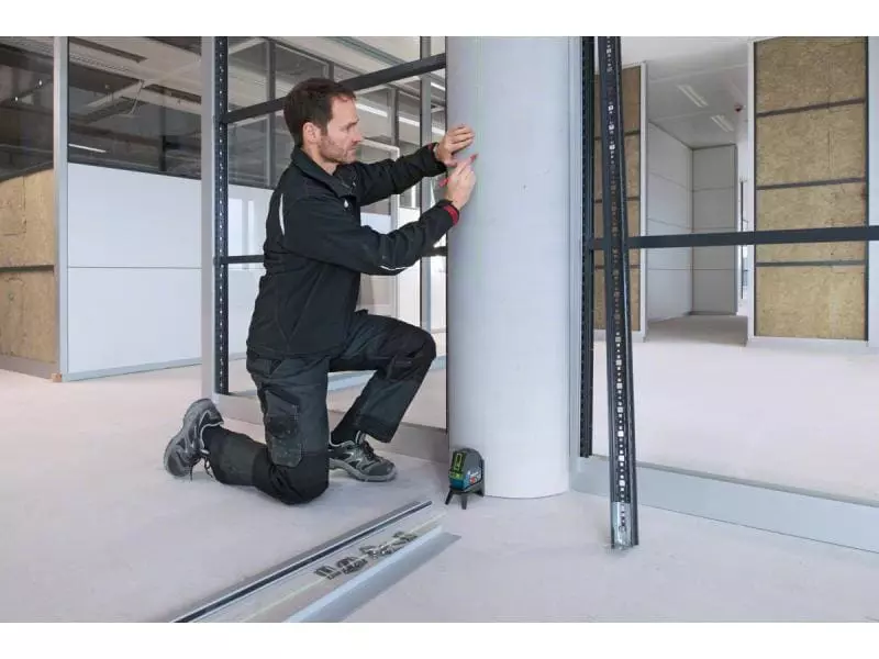 Mit einem Kreuzlinienlaser richten Sie Objekte aus und halten geometrische Vorgaben für Renovierungsarbeiten, Installationen und Verlegearbeiten ein. Durch die Projektion einer horizontalen und vertikalen Laserlinie ergibt sich an der Wand ein Kreuz, wobei die Linien im Winkel von 90° zueinander stehen. Die Ausmessung erfolgt dadurch besonders genau und zugleich schnell. Somit gehört das umständliche und ungenaue Arbeiten mit einer Wasserwaage der Vergangenheit an.