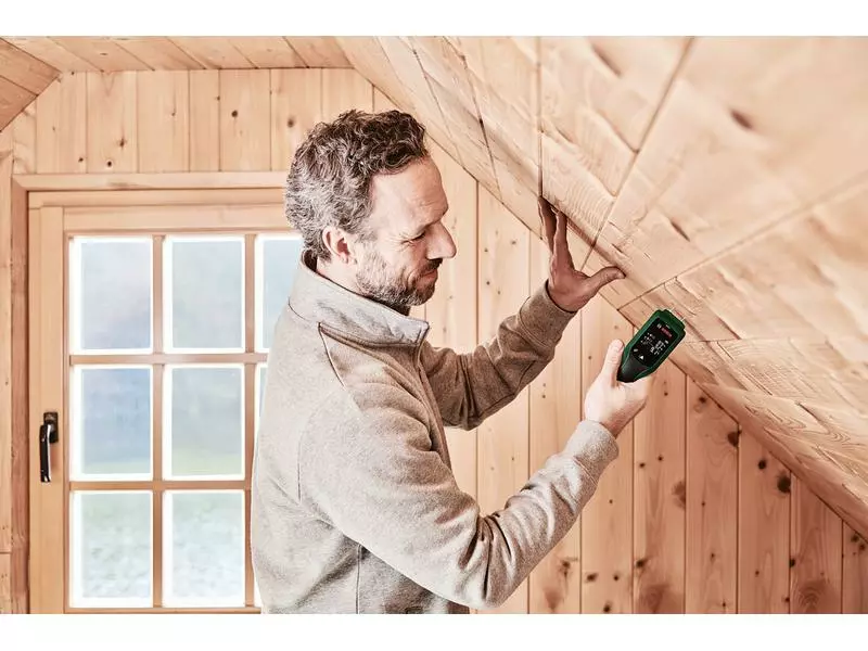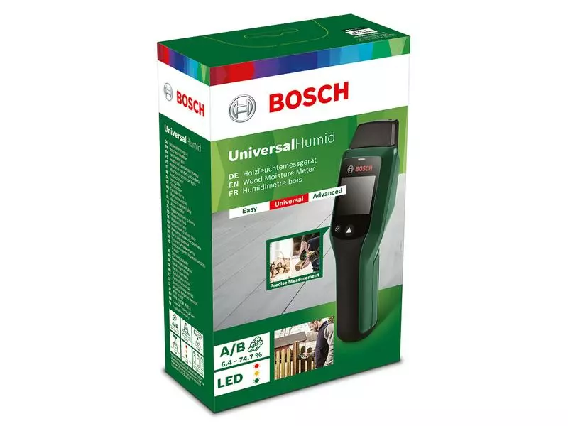 Der Bosch UniversalHumid Holzfeuchtigkeitsmesser wird verwendet, wenn die Holzfeuchte vor der Nutzung von Kaminholz, beim Parkettverlegen oder zum Schutz vor Schimmel ermittelt werden muss. Zum einfachen und genauen Prüfen stehen zwei vorprogrammierte Holzgruppen mit ihrem jeweils breiten Messspektrum zur Verfügung. Die Anwendung ist kinderleicht: Zum Messen werden einfach die zwei Messpins ins Holz gesteckt. Anschliessend sind die Werte auf dem grossen Display gut ablesbar. Das Gerät eignet sich auch ideal für Vorprüfen von Kaminholz für weniger Emissionen und Rauchentwicklung oder vor dem Möbel-Upcycling, z. B. um Risse zu vermeiden.