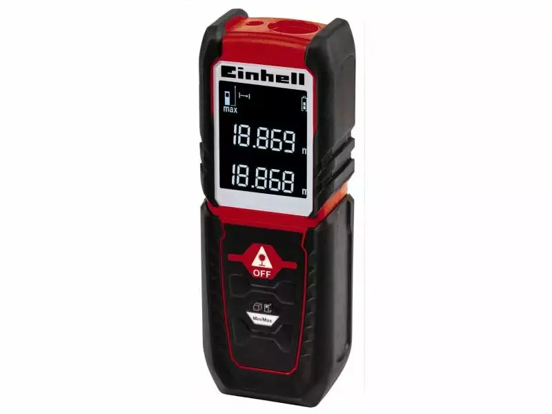Der Laser-Distanzmesser TC-LD 25 von Einhell ist ein kompaktes Gerät zur Messung von Strecken, Flächen und Volumen. Es eignet sich ideal zum Ausmessen bei Neubauten, Sanierungs- und Renovierarbeiten, bei Gestaltung des Gartens oder in der Werkstatt. Das Gerät verfügt über eine variable Schnittstelle zum Messen, welche ab Vorder- oder Hinterkante einstellbar ist. Zudem ist das TC-LD 25 dank der Min/Max-Funktion in der Lage Dauermessungen durchzuführen. Des Weiteren sorgt die Safety-Funktion für die nötige Sicherheit.