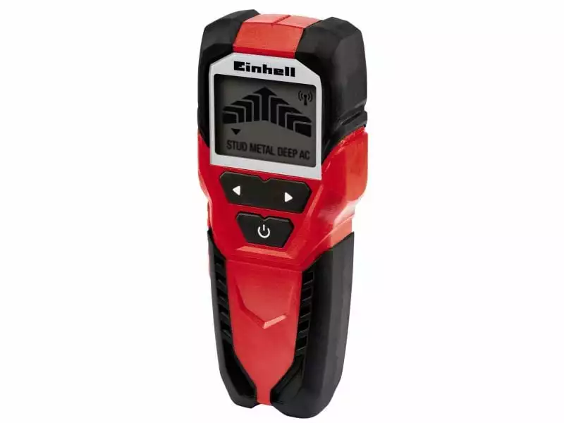Das digitale Ortungsgerät TC-MD 50 von Einhell eignet sich ideal zum Einsatz bei Bau- und Sanierungsarbeiten. Es hilft Ihnen beim Auffinden von Metallen, Holz und elektrischen Leitungen in Wänden. Eisenhaltige Metalle erkennt das Gerät bis in Tiefen von 50 mm, nicht-eisenhaltige Metalle bis 38 mm und Holz bis in Tiefen von 19 mm. Das akustische Warnsignal vereinfacht dabei die Bedienung. Zudem ist das TC-MD 50 rückseitig mit Schutzgleitern versehen, welche die Wände vor Beschädigungen bewahren.