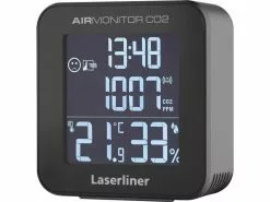 Der AirMonitor CO2 von Laserliner ist ein CO2-Messgerät, das die Kohlendioxid-Konzentration erfasst und bewertet, um entsprechende Warnsignale einzuleiten und zum Lüften zu raten. Am Display können Sie zudem Uhrzeit, Temperatur und Luftfeuchtigkeit ablesen. Er ist für den Einsatz in Wohnhäuser, Büros, Kindergärten,
