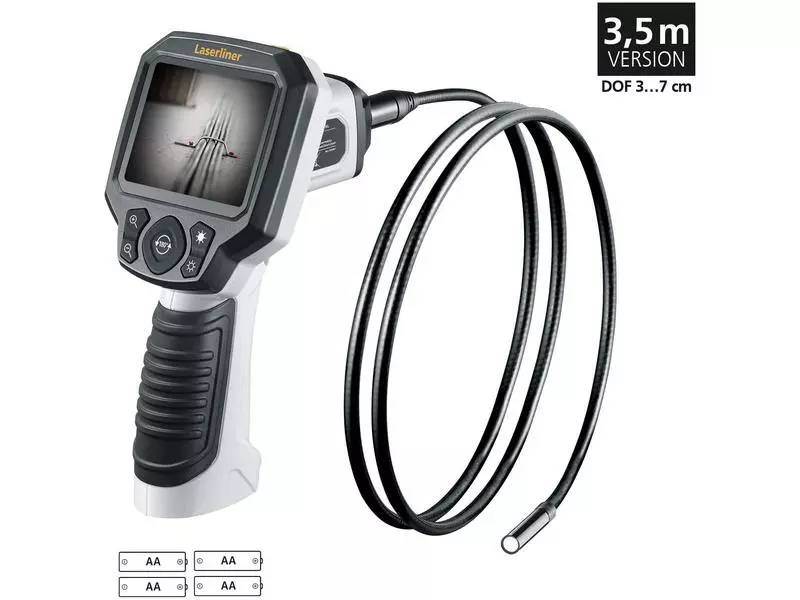 Mit der VideoScope XL Inspektionskamera kann eine gezielte Problemlokalisierung an schwer zugänglichen Stellen durchgeführt werden. Der Videoinspektor zeigt, was sich hinter oder in Gegenständen, Wänden, Leitungen, Kabeln etc. befindet, auch unter schlechtesten Lichtbedingungen. Der kleine, wasserdichte Kamerakopf ermöglicht vielfältige Anwendungen. Das Bild steht durch Rotation und Spiegelung am Monitor immer gut wahrnehmbar zur Verfügung. Auflösung Kamera 640 x 480 Pixel, Auflösung Display 320 x 240 Pixel, LED 5 Helligkeitsstufen, ZOOM 2-fach Digitalzoom in 20% Schritten, Flexischlauch 3.5 Meter.
