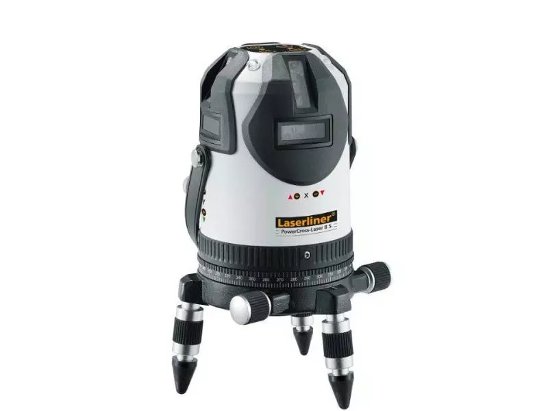 Bei dem PowerCross-Laser 8 S von Laserliner handelt es sich um einen Kreuzlinien-Laser, der mit Ihnen acht ultrahelle Laserlinien, eine Neigungs- sowie ein Lotfunktion bietet. Die integrierten Laserdioden der höchsten Leistungsklasse erzeugen helle Laserlinien, die auch auf weiter entfernten und dunklen sowie hellen Oberflächen deutlich sichtbar sind. Hierbei sorgen die vier horizontalen Laserdioden für eine 360°-Laserlinie und die vier vertikalen Laserlinien sind rechtwinklig zueinander ausgerichtet.