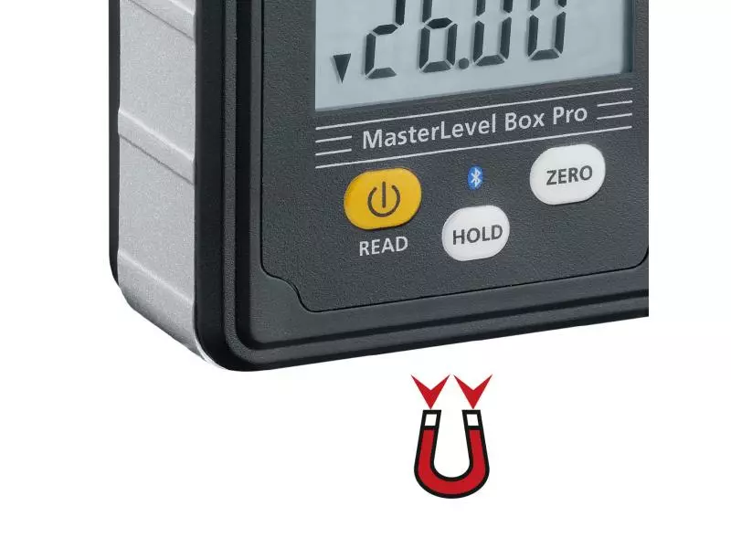 Der MasterLevel Box Pro ist eine kompakte, digitale Elektronik-Wasserwaage mit Haftmagneten. Sie verfügt über ein beleuchtetes Flip-Display und ist mit Bluetooth zur Übertragung von Messdaten ausgestattet.