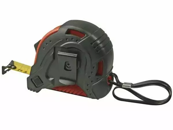 Dieses Massband lässt sich auf die gewünschte Länge ausziehen und mit einem der Stopper in der gewünschten Position arretieren. Dabei können Längen bis zu 8 m gemessen werden.