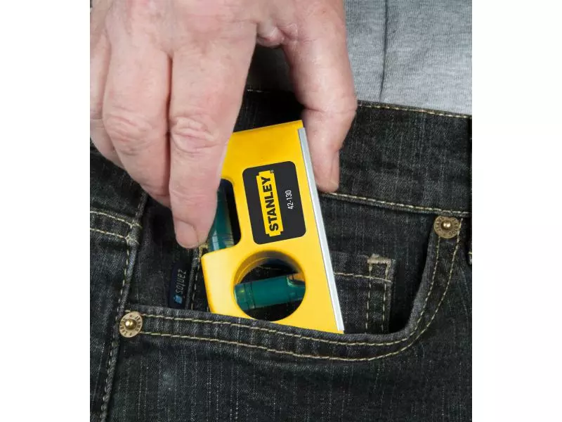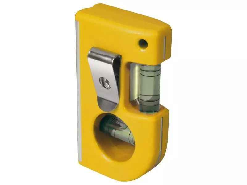 Die kompakte Taschen-Wasserwaage verfügt über ein robustes Kunststoff-Gehäuse. Die zwei Libellen (horizontal und vertikal) sind leicht ablesbar. Die Sohle ist stark magnetisch (Seltenerd-Metall), und dank der Hohlkehle in der Messfläche eignet sich die Wasserwaage auch ideal für gewölbte Flächen.