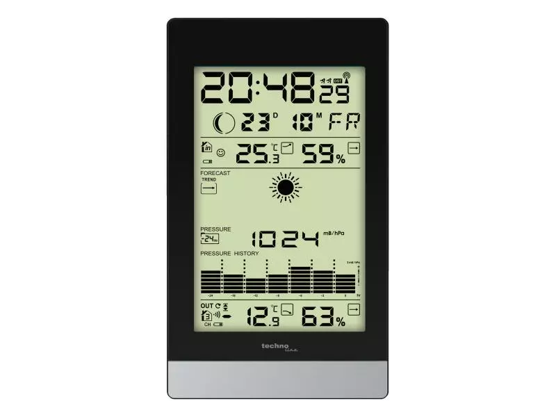 | Funktionen | Mondphasen, Innentemperatur, Aussenluftfeuchtigkeit, Aussenluftdruck, Uhrzeitanzeige, Aktuelle Wetterlage, Display, Aussentemperatur |