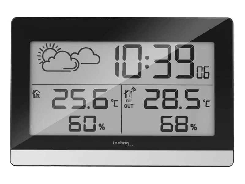 | Funktionen | Innentemperatur, Aussenluftfeuchtigkeit, Uhrzeitanzeige, Aktuelle Wetterlage, Display, Raumluftqualität, Aussentemperatur |
