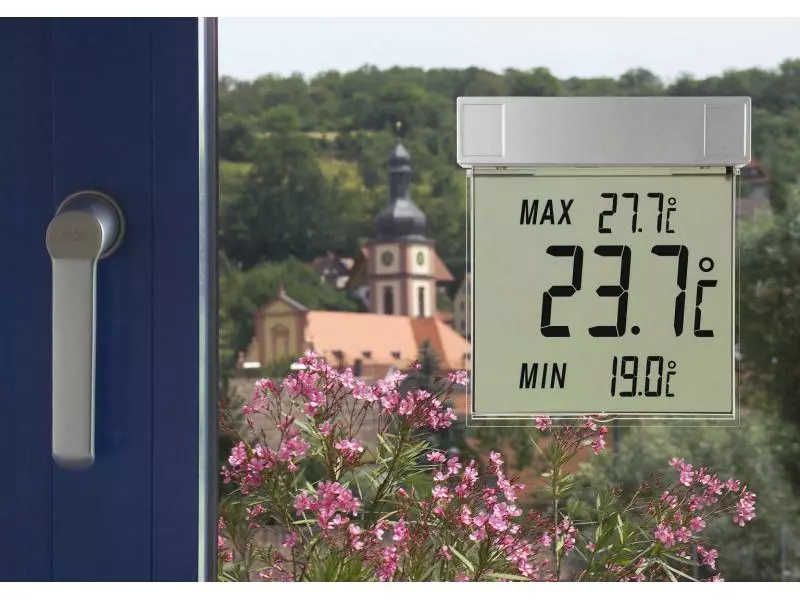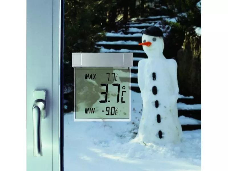 Das digitale Fensterthermometer «Vision» von TFA Dostmann ermöglicht Ihnen das bequeme Ablesen der Aussentemperatur von innen durch das Fenster. Klares Design und eine grosse Siebensegmentanzeige garantieren höchste Funktionalität. Tageshöchst- und Tiefsttemperaturen werden automatisch aufgezeichnet und zurückgestellt.
