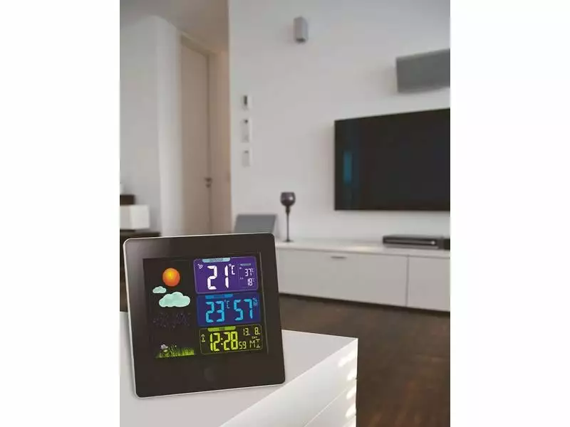 | Funktionen | Innentemperatur, Uhrzeitanzeige, Aktuelle Wetterlage, Display, Raumluftqualität, Aussentemperatur |