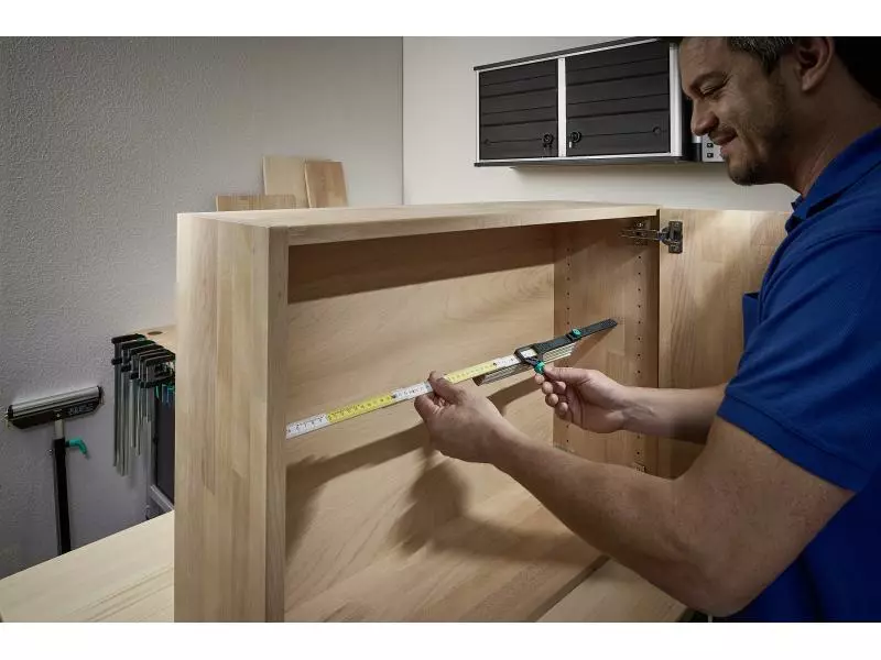 - Verwandelt jeden handelsüblichen Zollstock in ein multifunktionales Messinstrument